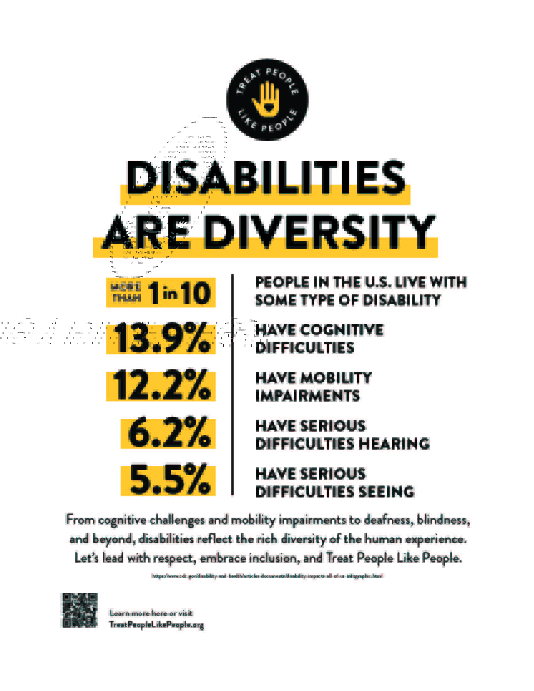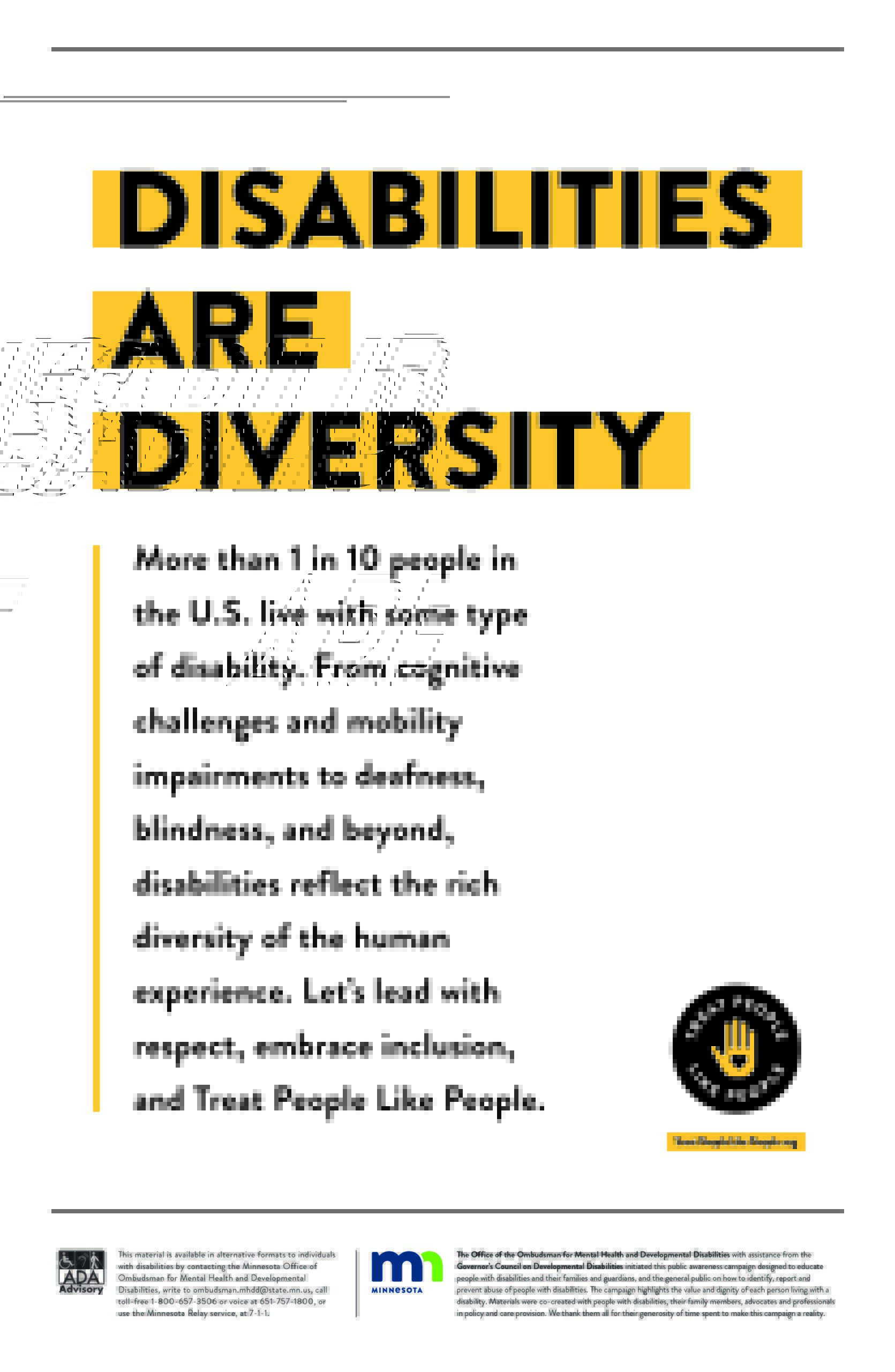Disabilities are a part of human diversity. And everyone can help create a more inclusive society that benefits us all. Take the first step and help your community understand the importance of welcoming diversity with the materials below.